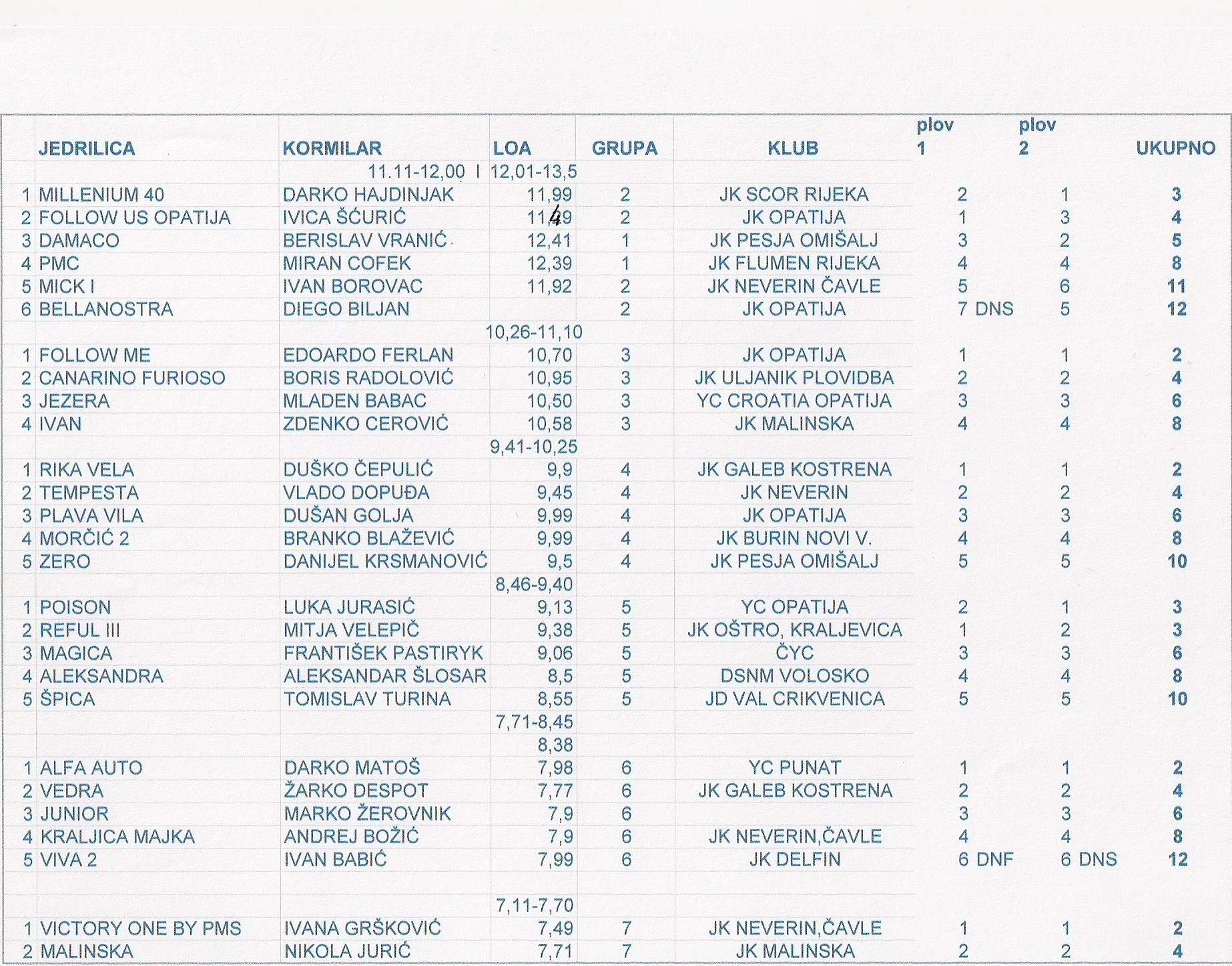 Krk | Saša , Klaudio , Rajko , Jan i Darko | Ukupno: 8 - U grupi: 1 |