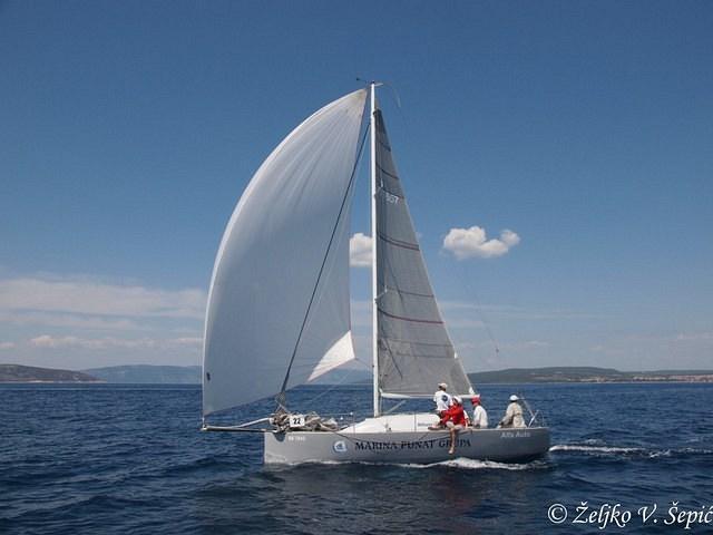 Novi termin održavanja regate Krčka jedra je odvojen od tradicionalnih brodica tako regata po open-u starta u subotu 11. kolovoza a tradicionalne 15. za Velu Gospu. Svi su se složili da je to vrlo korektno prema ljudima koji su mnogo truda uložili i ulažu u održavanju starih brodica te zaslužuju da imaju svoj dan za promociju svojih prelijepih radova i majstorija. U subotu je iz Krčkog porta isplovilo 27 jedrilica koji su startali u orcu po buri prema Prnibi te novim kursom oko malog Plavnika što se poslije pokazalo vrlo lošim izborom organizatora jer nažalost vjetar je posve posustao te je za mnoge jedrilice to bio i kraj regate nisu bili u mogućnosti okrenuti otočić. Ufo Tončija prvi stiže do otočića , mi smo odmah iza te nas sustižu ostali brodovi. Radimo desetak manovri vjetar mijenja smjer te skroz slabi hvatamo nekoliko refulića te uspijevamo okrenuti otočić. Nažalost mnogi brodovi plutaju iza nas u sablasnoj bonaci. Nakon nekoliko refula zapadnjaka hvatamo buru koja odvaja nas i Ufo te počinje regata jedan na jedan. Na bovi Negrit križamo ispred Ufa te imamo prednost od jedne dužine broda. Nakon prolaska oznake vjetar nas časti sa desetak i više čvorova bure te vozimo laško prema Prnibi. Ufo nas prolazi te odmiče diže genaker a mi drifter što se pokazalo bolji izbor te ga sustižemo do sljedeće oznake. Okrećemo bovu sada su oba broda na genakeru te imamo dva kruga štap jedrenja. Trudimo se maksimalno ali ne možemo puno Ufo ipak puno brži te nas vode oko stotinjak metara do okreta , nakon kojeg vjetar pada te upadaju u rupu bez vjetra. Uspjeli smo ostati u vjetru te ih prelazimo. Nakon stotinjak metara suci u regatnom brodu daju nam znak da je regata skraćena te prvi prelazimo ciljnu liniju. Čestitamo Tončiju i njegovoj posadi na dobroj borbi dvoboju ali ovaj put imali smo više sreće od njih. Nažalost samo je sedam brodova uspjelo završiti regatu. U pobjedničkoj ekipi jedrili: Saša , Klaudio , Rajko , Jan i Darko.