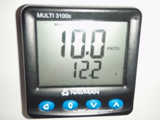 "Idemo natrag u Rijeku?" kaže Darko. Jan i ja smo za to da nastavimo, Marin šuti. Odlučili smo da idemo još jednom bliže Cresu pa ako je vjetar oslabio možda ćemo nastaviti. Ali nije. I nećemo. Ima Darko pravo. Probali smo, ali ne ide. Prvo se opravdavamo jedan drugome kako postupamo ispravno i nemamo za čim žaliti, ali kako se mišići hlade (svi smo potpuno mokri od konstantnog zalijevanja valova) shvaćamo da je to bilo jedino logično rješenje, prije nego nešto ne pukne ili netko ne završi u moru. U 4ipol smo krenuli natrag u Rijeku, nakon 5ipol sati borbe sa jugom. Malo smo pojeli i ponovno živnuli. Plovimo ravno prema Rijeci samo na novi flok, brzina nam ne pada ispod 7 čv. Jedna ideja je bila da vratimo jedrilicu u Omišalj ali kad smo prošli puntu kraja Cresa i shvatili da je tamo jugo još nemilosrdnije, brzo smo odustali od toga. Vjetar je sve jači, plovimo 9-10 čv. (vidi sliku gore). U Rijeci smo za 3 sata.